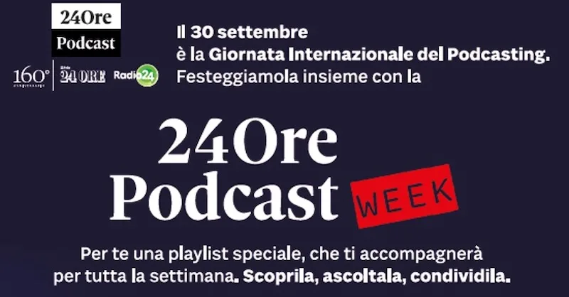 Ricevo e pubblico un comunicato inviatomi da 24Ore Podcast / Radio24 – Il Sole 24 Ore, che annuncia un autunno ricco di iniziative dedicate al mondo dell’audio e del podcasting, che partirà da oggi, in occasione della Giornata Internazionale del podcasting. Tra i principali appuntamenti: la Pod